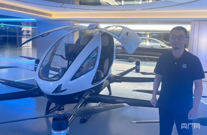 ▲载人级eVTOL在珠江新城CBD实现常态化飞行(央广网记者 张顺鹏 摄)